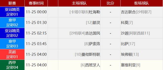 其他赛事比分: